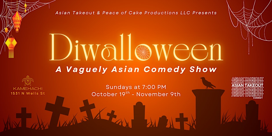 "Diwalloween: A Vaguely Asian Comedy Show" is an hour(ish) long original sketch show written by Asian Takeout Comedy. Asian Takeout is Chicago's premiere all-Asian comedy group. You can catch their monthly, sold-out variety show, "Today's Specials" every second Sunday at Kamehachi. Every show opens with a guest who performs anything from standup to music to characters! We strive to highlight comedians and performers of AANHPI descent.