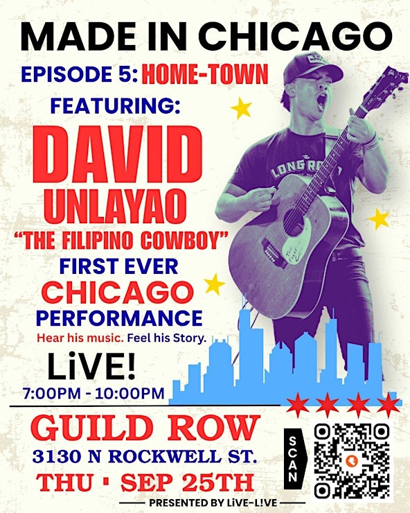 Join us for a special evening with David Unlayao, The Filipino Cowboy, as he brings his Nashville storytelling and country-pop sound to Chicago’s Guild Row. Fresh off a main stage performance at The Long Road Festival in the UK and named to Apple Music’s Color Me Country Class of 2025, David blends his Filipino heritage with modern country music, creating a unique and powerful live experience.
