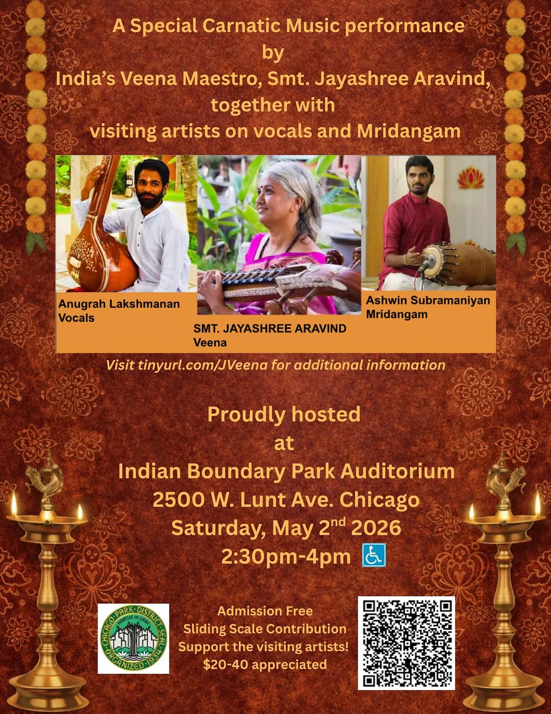 Join us at the Indian Boundary Park Auditorium on May 2nd for an authentic Carnatic music experience by my aunt and team!